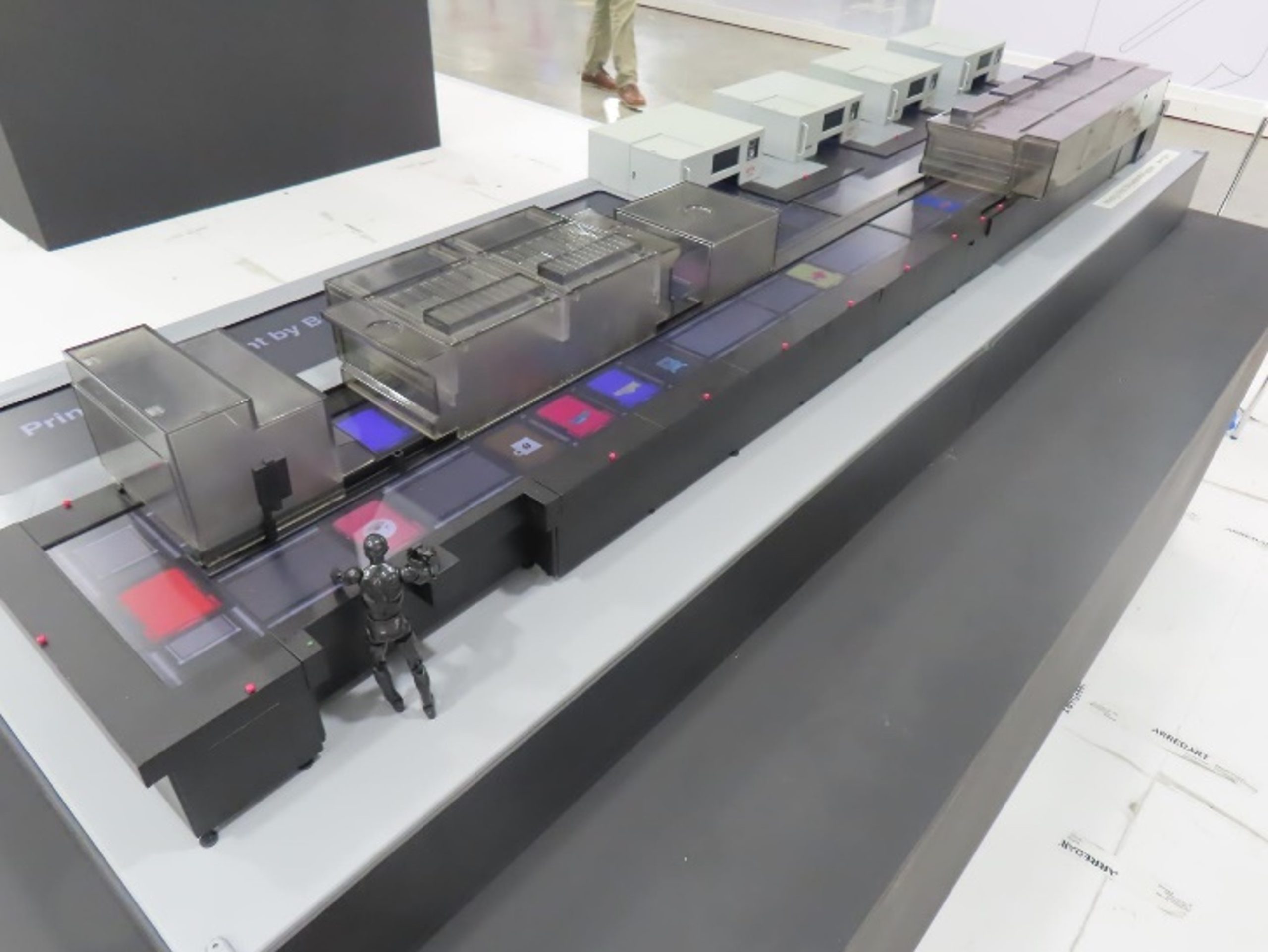 Tシャツプリントに必要な前処理・プリント・乾燥の工程が一貫で全自動で対応できるガーメントプリントシステム「DIGITAL LINE2400」の展示用模型を作成しました。